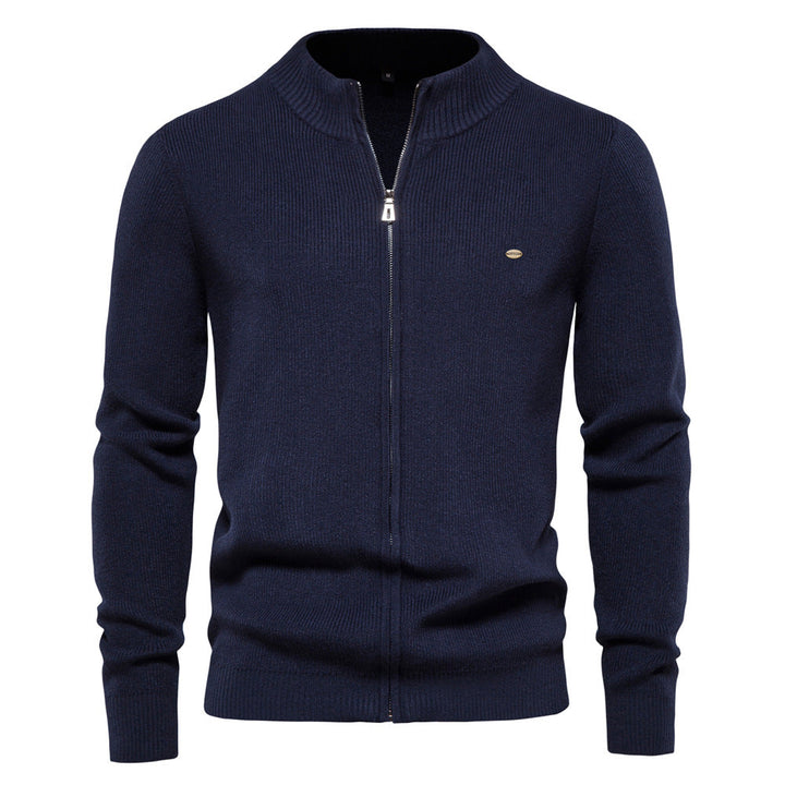 Men's Casual Vintage Style Stand Collar Full Zip Up Cardigan Sweater Coat