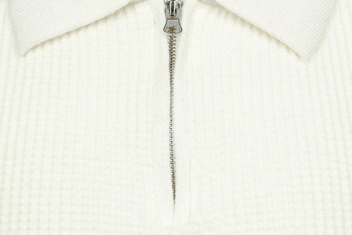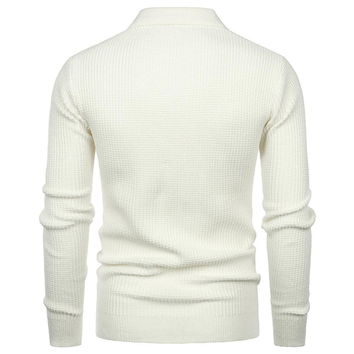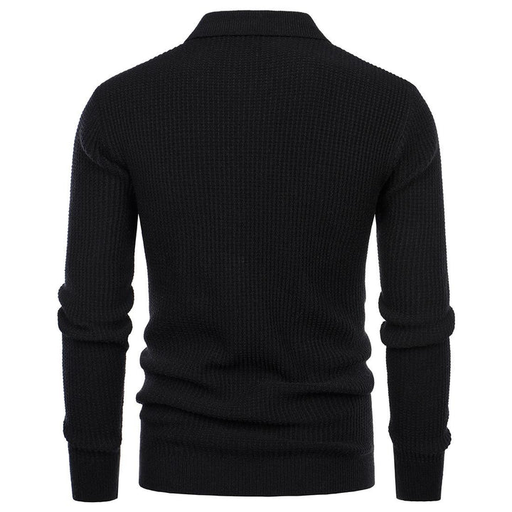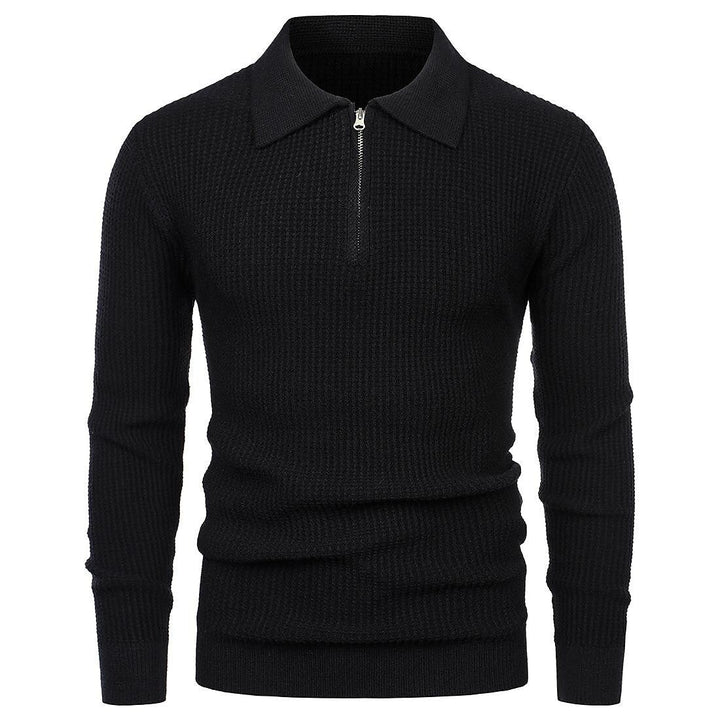 Men's Lapel Pullover Waffle Half Zipper Slim Fit Sweater