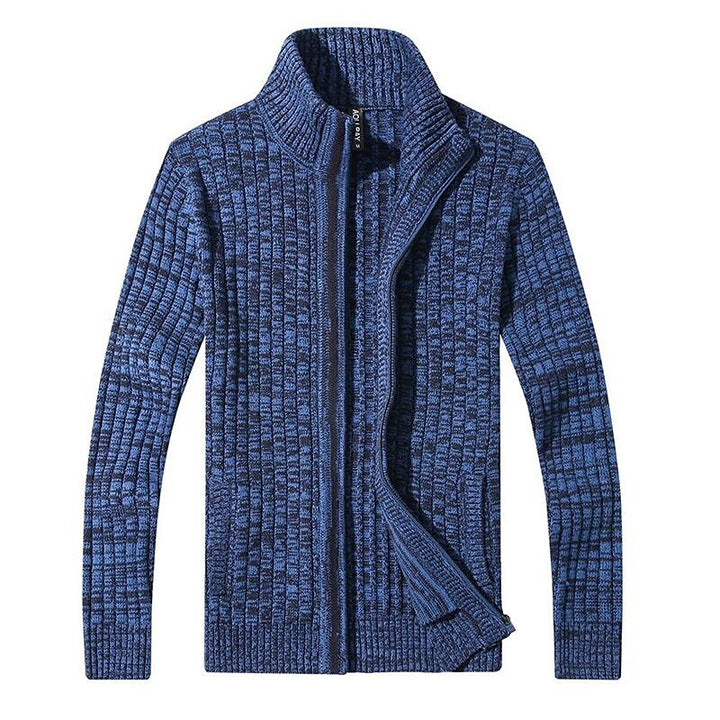 Men's Melange Stand Collar Slim Fit Zipper Sweater
