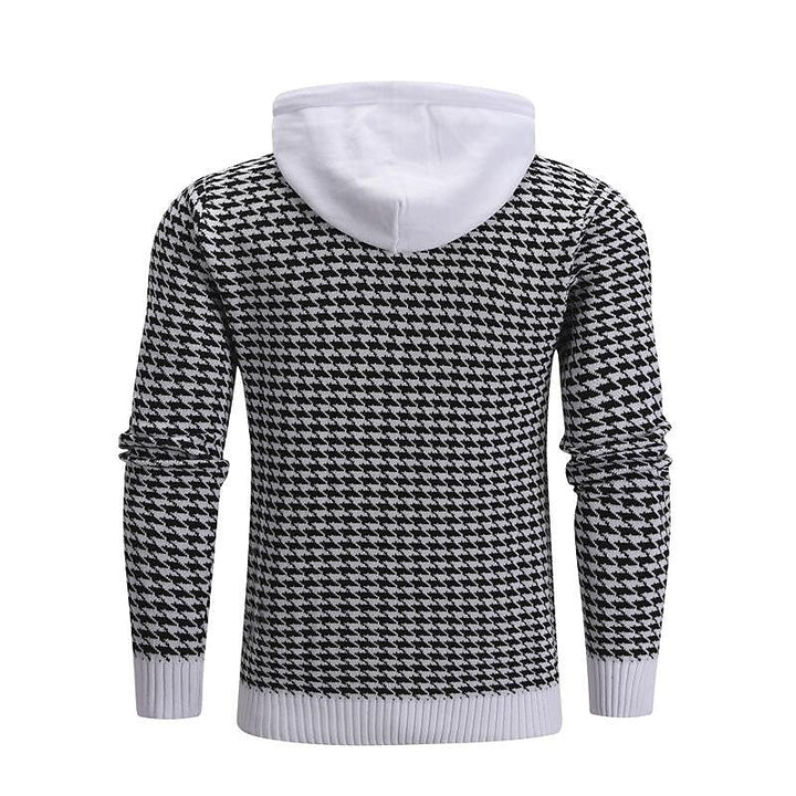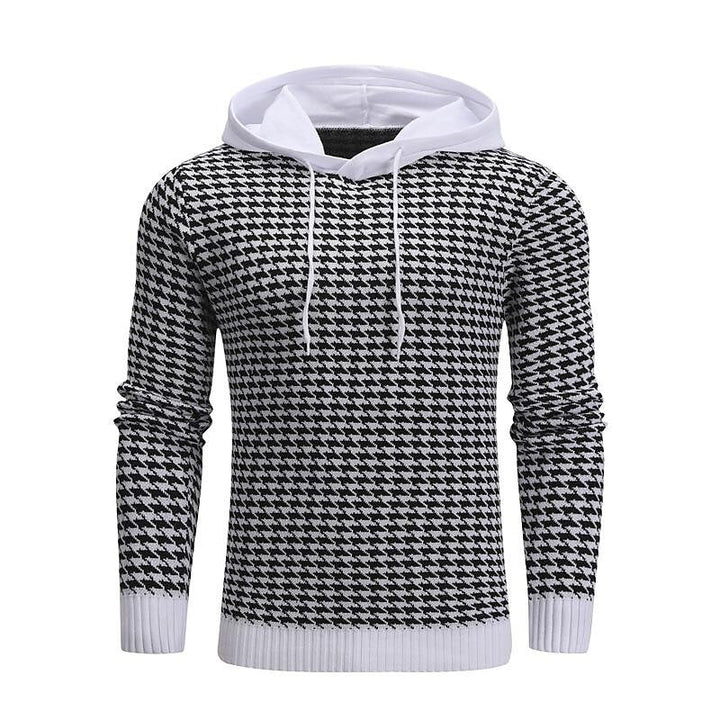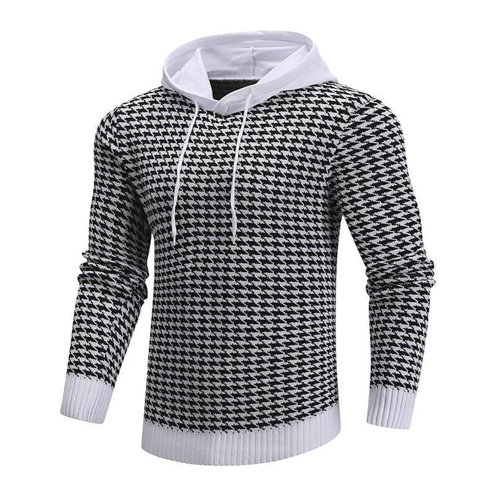 Men's Pullover Jacquard Houndstooth Hooded Sweater Basic Vintage Style