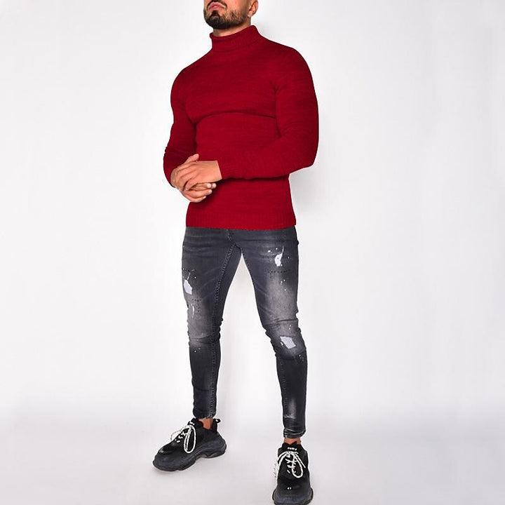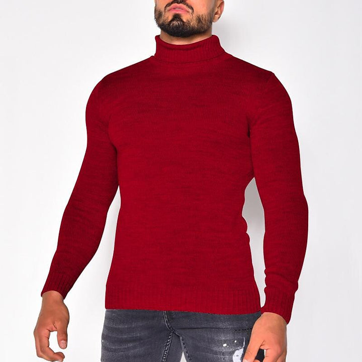 Men's Pullover Turtleneck Solid Color Basic Knit Sweater
