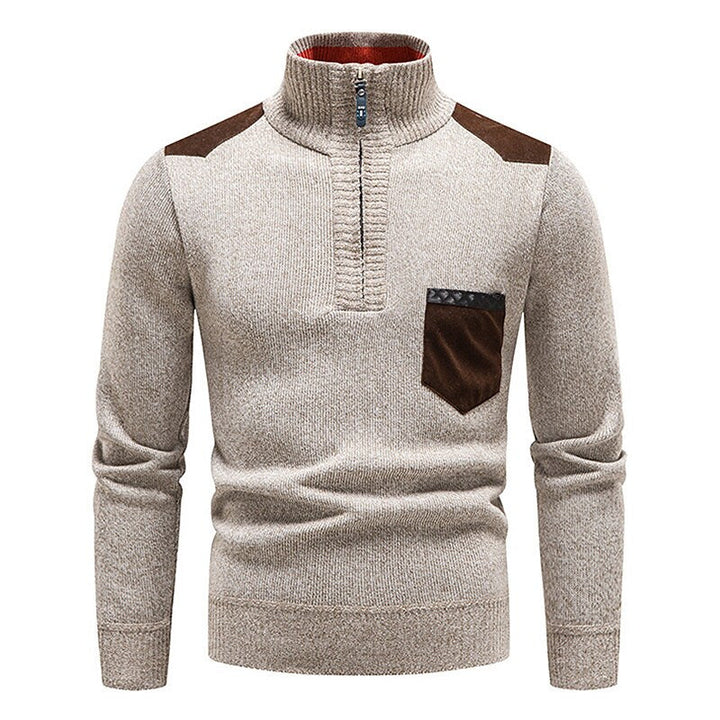 Men's Stand Collar Color Block Half Zip Fleece Pullover Sweater