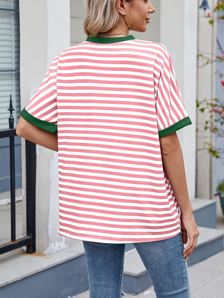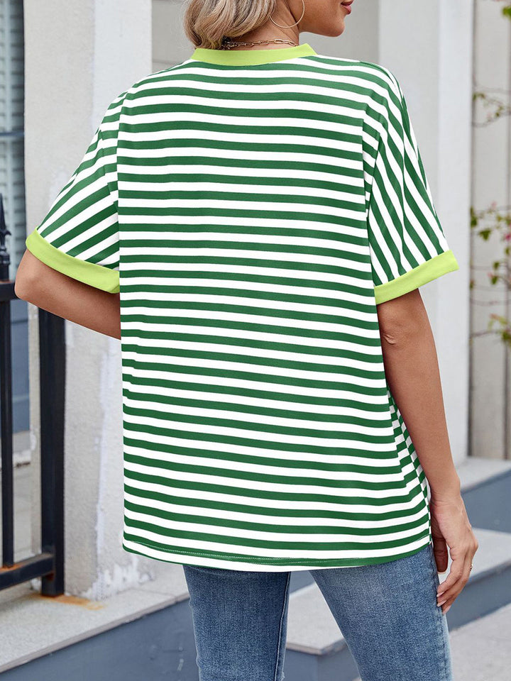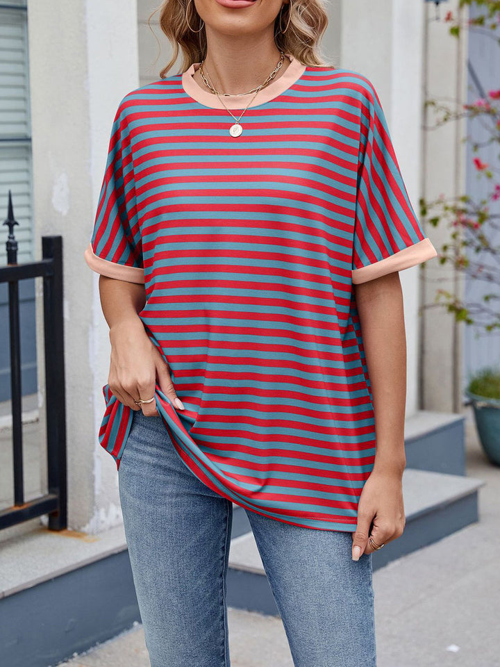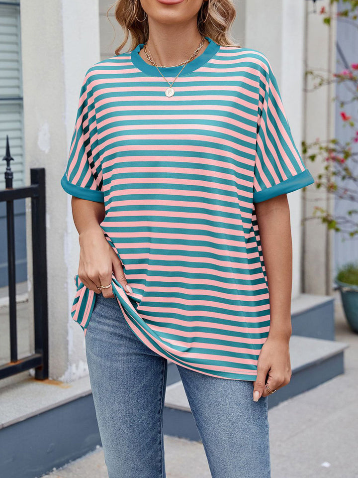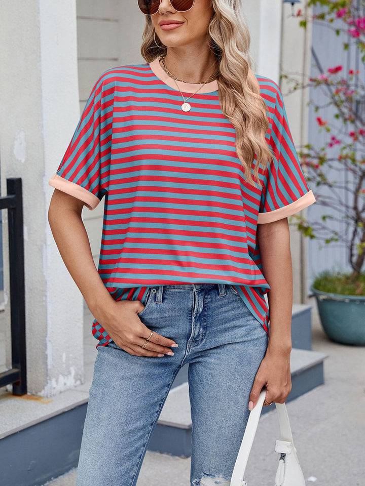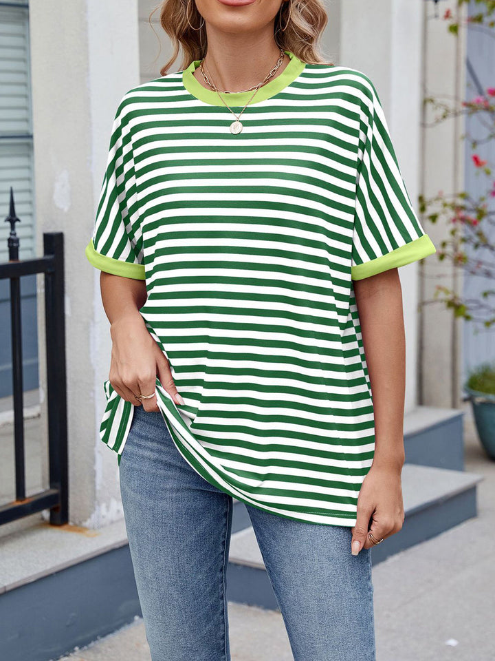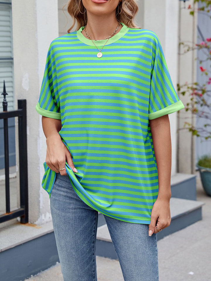 This striped short sleeve T-shirt is crafted from a premium cotton-blend fabric that’s soft, lightweight, and breathable. Stretchy yet structured, it drapes beautifully and feels gentle against the skin—perfect for warm days or layering on cooler evenings.