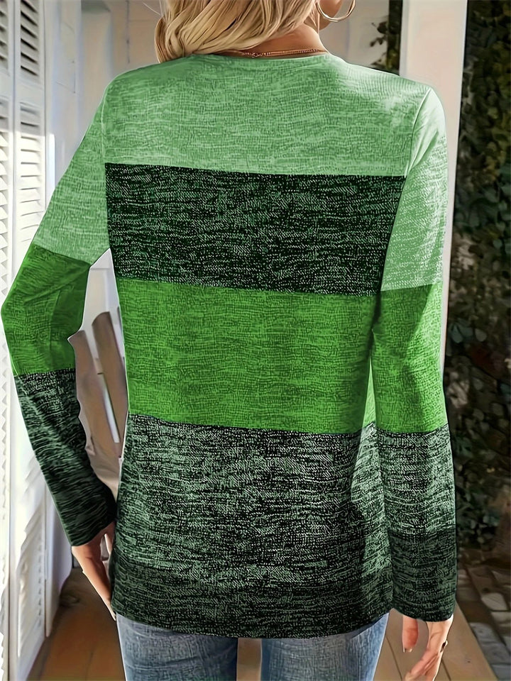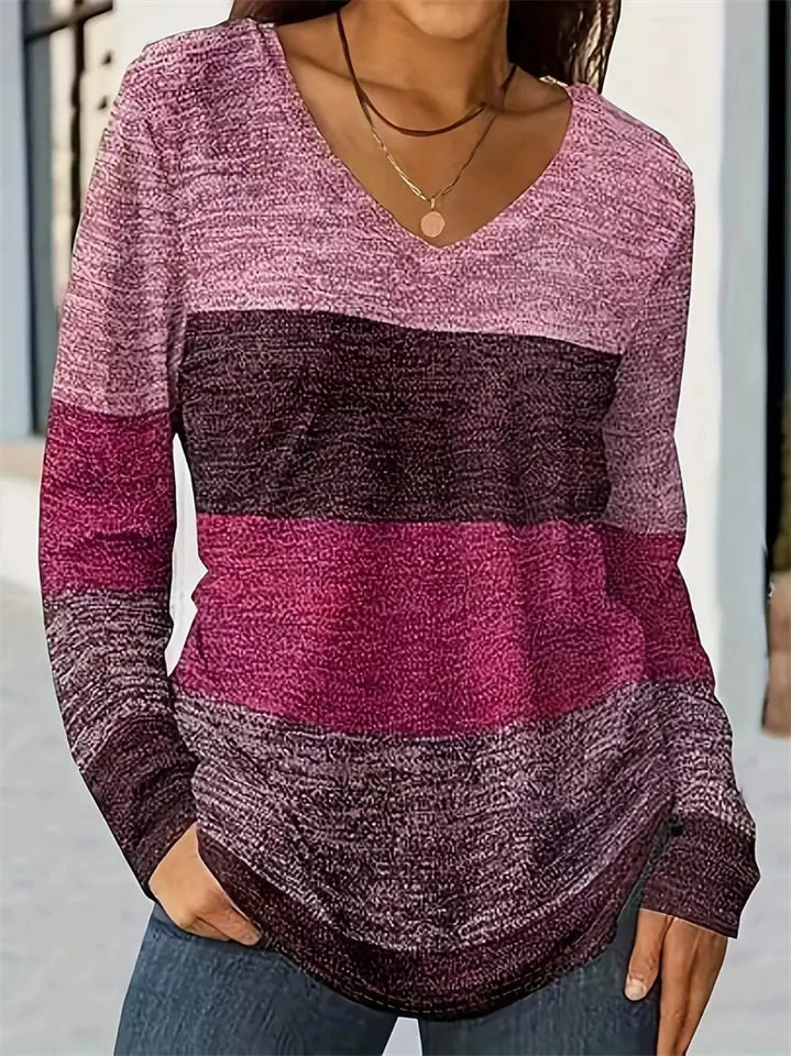 Plus Size Women's Casual Contrast Color V Neck Long Sleeve T-Shirts